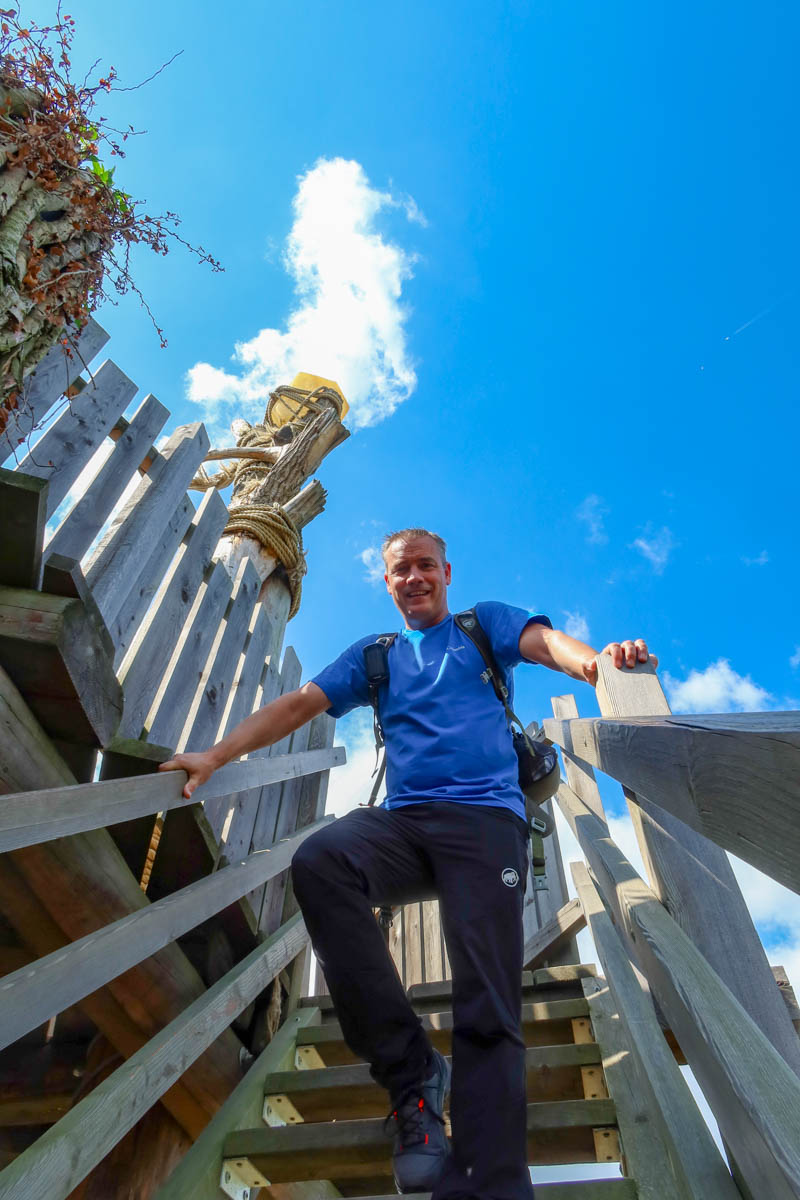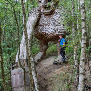 In het bos bouwden de trollen ook een gigantische uitkijktoren, opgetrokken uit dikke boomstammen en afgebroken takken. In die toren huist ‘The Holy Troll’ en van op de top heb je een prachtig uitzicht over De Schorre en de de verre omgeving. Bij helder weer zie je tot wel 25 kilometer ver. Zo zie je in de verte zelfs het Atomium in de hoofdstad opduiken aan de horizon.