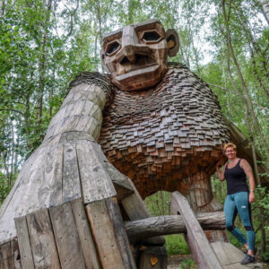 De beste manier om de zeven houten trollen te ontdekken is te voet. Er is een wandelpad aangelegd, waarbij je langs de trollen loopt. Wij liepen langs de trollen door een Adventure lab te doen. Wij vinden dit een leuke en actieve manier om te wandelen. Een van de trollen was bewust wat weggestopt tussen de bomen, waardoor we enige moeite moesten doen. Maar als je een beetje je best doet, zal het lukken om ze allemaal te vinden.