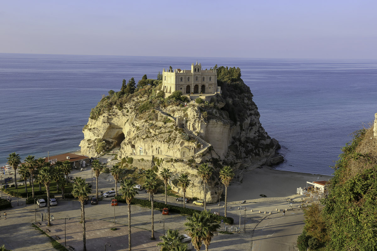 We struinde door de straatjes van Tropea en dan kun je om elke hoek wel een foto maken. Het is een gezellig, levendig stadje met een doolhof van straatjes en steegjes die uitkomen op pleinen met kerken en vervallen huisjes. Na een korte wandeling gingen we zitten op een terras met mooi uitzicht over de Tyrreense Zee. Onder ons lag het Santa Maria dell’Isola. Een kerk op een eiland die kenmerkend is voor Tropea. Nadat we tien minuten niemand hadden gezien kwam er uiteindelijk een ober wat mensen helpen. Maar na nog eens een tijdje wachten kwam er niets en zijn we maar een ander terras gaan zoeken.